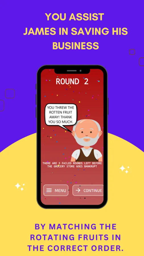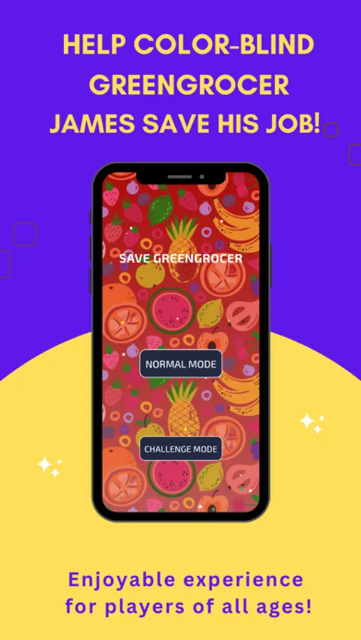 In the fun game "Save Greengrocer", you help James, a color-blind grocer, to save his business. As James tries to sell healthy fruits and vegetables to satisfy his customers, he cannot distinguish between rotten produce due to his color blindness. In the game, you assist James in saving his business by matching the rotating fruits in the correct order. With each level, the speed of the rotating fruits increases and the difficulty level rises. While the misleading colors of the fruits capture the players' attention, the simple controls and fun fruit-themed graphics provide an enjoyable experience for players of all ages. Are you ready? Start playing today to help James!