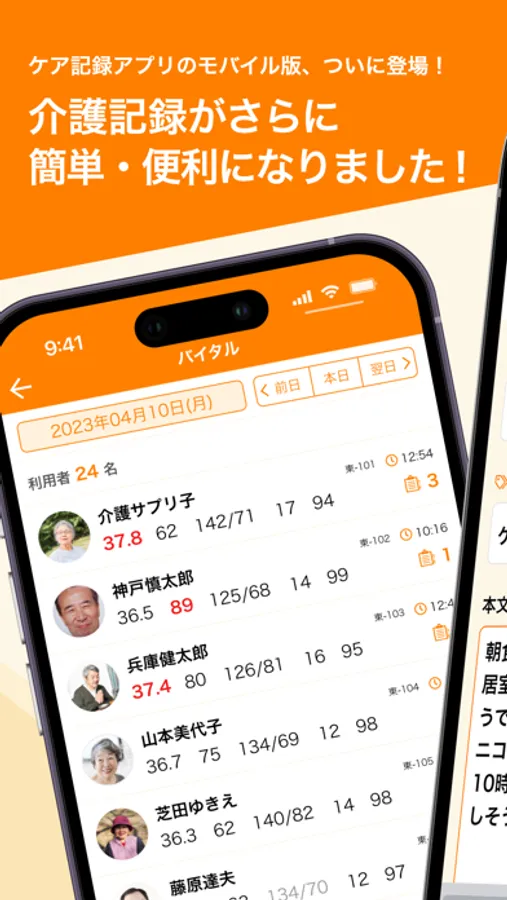 ケア記録アプリは、介護現場で活躍される介護スタッフや看護師の方々が使う介護記録専用アプリです。