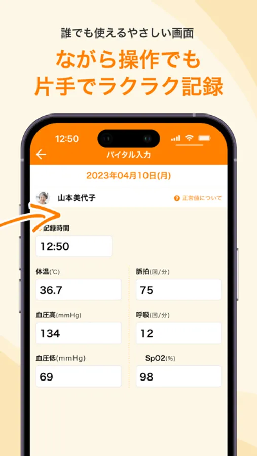 ・バイタル・身長・体重・食事・服薬・点眼・口腔ケア・入浴・水分摂取・排泄・経過記録
