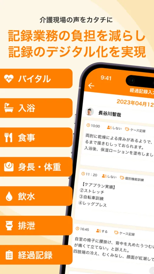 利用者の日々の様子や状況を残すための大切な介護記録。その記録業務の効率化を支援するために『介護現場の声をカタチに』をコンセプトに誕生しました。