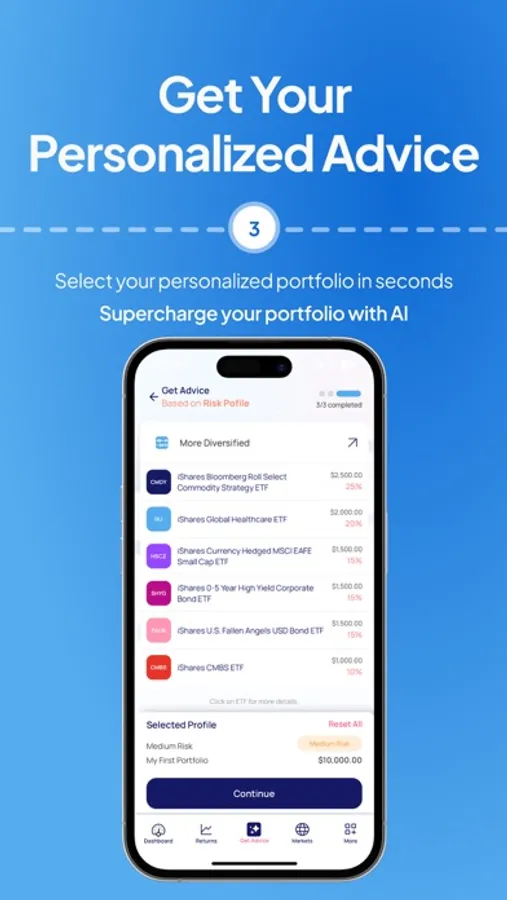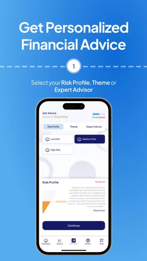 Choose from your risk profiles, investment themes, expert advice, and learn your particular investment strategy. Our AI and advanced financial algorithm recommend regular investment advice composed of investment funds.
