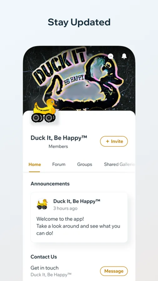 Duck It, Be Happy™ by Duck It, Be Happy™ LLC is a social media platform that allows users to share their happiness with the world. Our platform encourages users to stay positive and be happy. From positive messaging and virtual content to uplifting communities, Duck It, Be Happy™ LLC is here to make sure you stay happy.