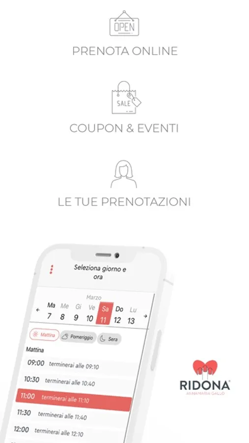 La nostra APP ti offre una vasta gamma di funzionalità, che ti aiutano a organizzare la tua vita quotidiana e rimanere in contatto con il centro estetico Ridona.