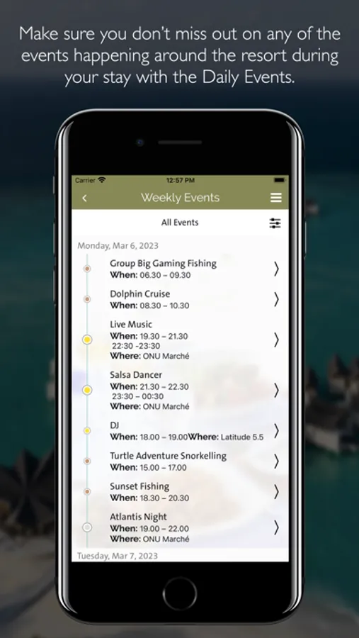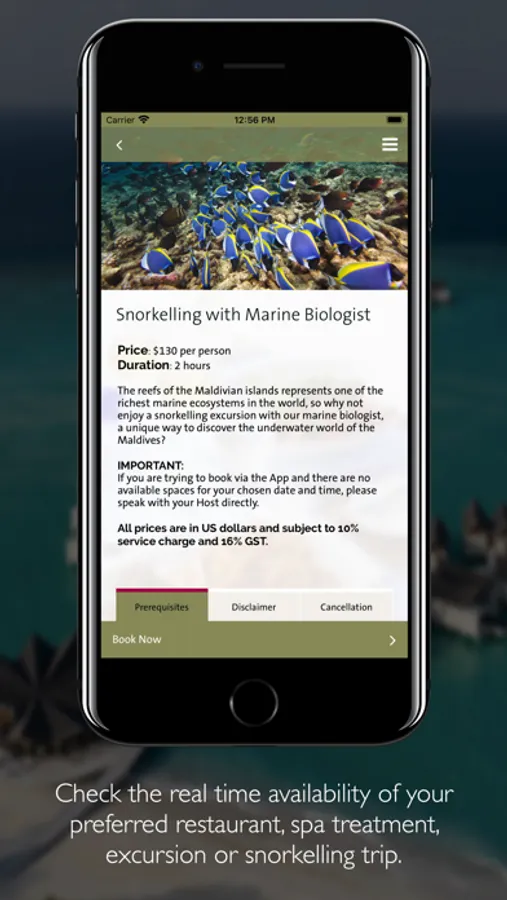 Book dining experiences, spa treatments, excursions, and activities, such as scuba diving, snorkelling and water sports