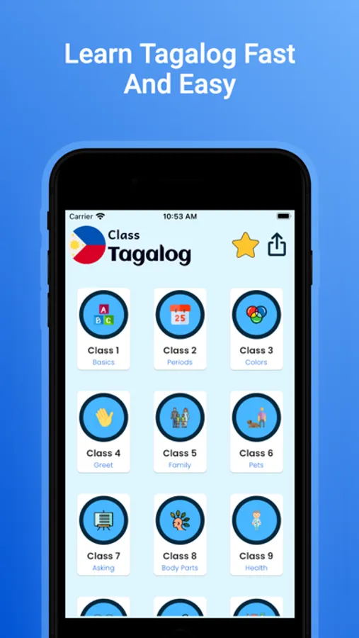 Complete Tagalog Language learning course from basics to advance level and for beginners. Our app lets you learn Tagalog language within two months of durations if you are really serious to learn Tagalog. There are hundreds of different categories available in the app include daily life important phrases of Tagalog language. There are thousands of Tagalog words and phrases as well as also Tagalog sentences available in the app.