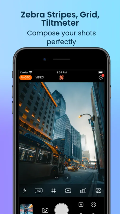 Grid: Use the grid overlay to compose your shots perfectly.