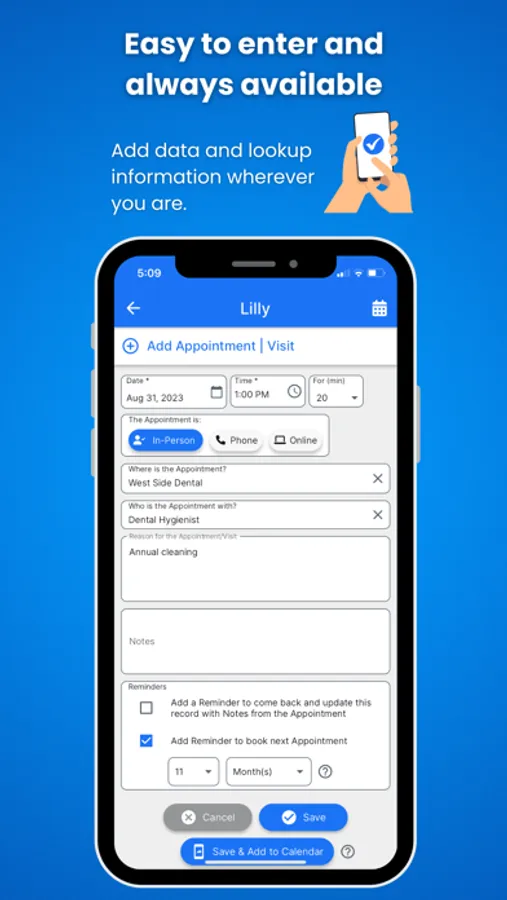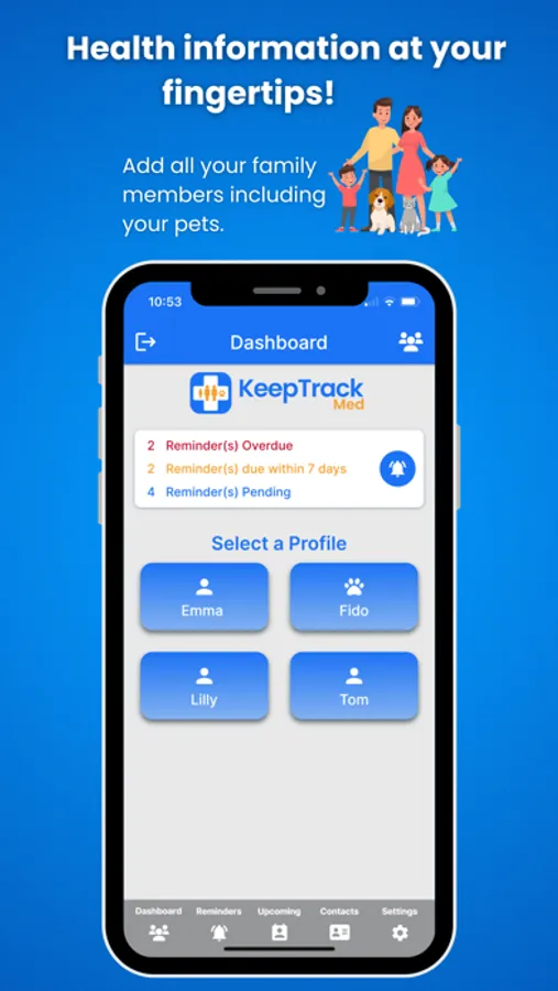 Just one medical tracker to store all the important health information for you, your children, and even your pets.