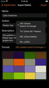 - ASE (Adobe Swatch Exchange) - supported by Procreate, Photoshop and others