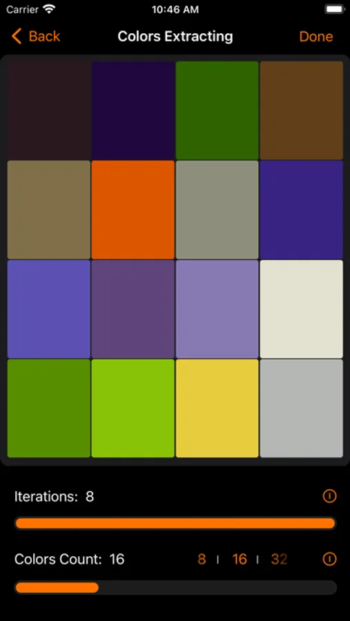 The app can automatically extract the best palette from your picture. You have full control on the process!