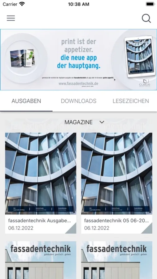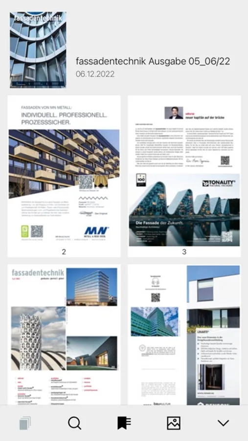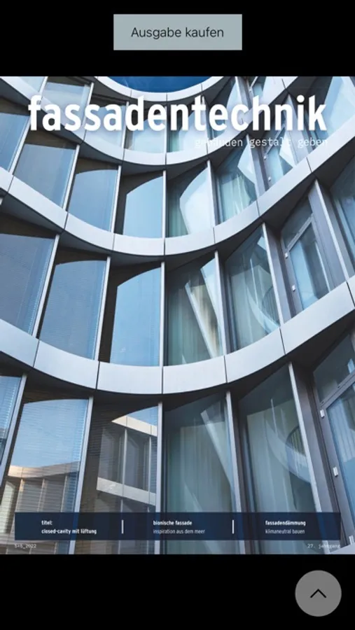 Die Fachzeitschrift Fassadentechnik bietet Informationen auf ingenieurmäßig zu planende Gebäudehüllen mit einem besonderen Augenmerk auf Pfosten-Riegel-Konstruktionen und Elementfassaden, Vorgehängte Hinterlüftete Fassaden sowie den Metallleichtbau. Mit unserer fassadentechnik-App können Sie als Abonnent*in auf unsere digitale Version der Fachzeitschrift zugreifen. Zudem können Sie unsere Sonderausgaben lesen. Nutzen Sie unsere digitalen Extras auf allen Endgeräten, z. B. Bildergalerien, Videos, individuell anpassbarer Lesemodus, Volltextsuchen und vieles mehr.
