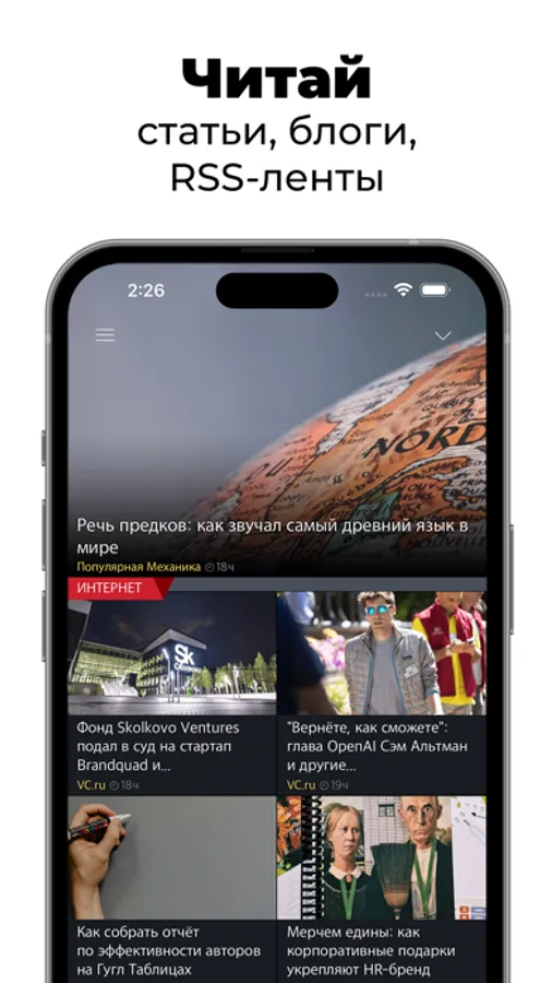 - возможность читать новости без подключения к интернету (в офлайн-доступе вы можете просматривать только недавние новости и страницы, сохраненные в закладки);