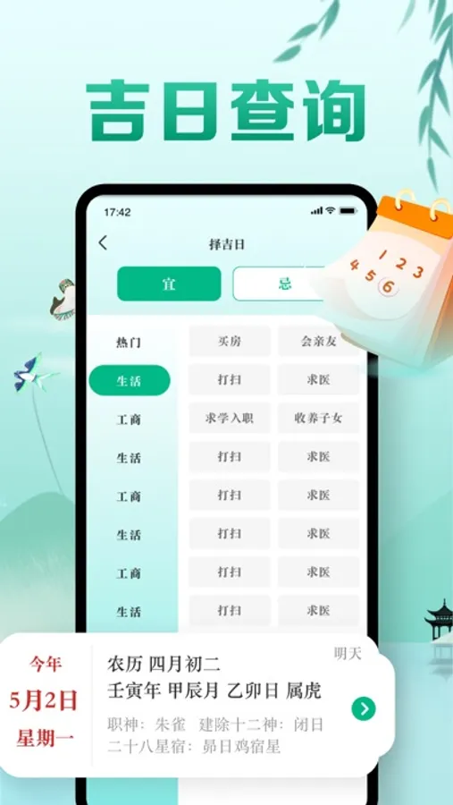 泽希万年历,适合中国人的万年历、老黄历,查询吉凶、安排重要日程。