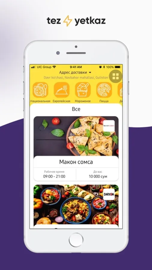 Mazali taomni xohlaysiz-u, lekin ovqat pishirish yoki ovqatlanish bilan bog'liq qiyinchiliklarni xohlamaysizmi? “Tez Yetkaz”dan boshqa narsani izlamang, bu taom yetkazib berish bo‘yicha eng ilg'or ilova bo‘lib, u oshxona lazzatlarini to‘g‘ridan-to‘g‘ri uyingizga olib keladi.