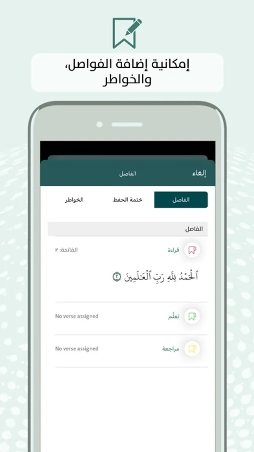 4- العلامات المرجعية: وضع فواصل لمساعدتك على قراءة الورد اليومي أو ختمة الحفظ أو التدبر.