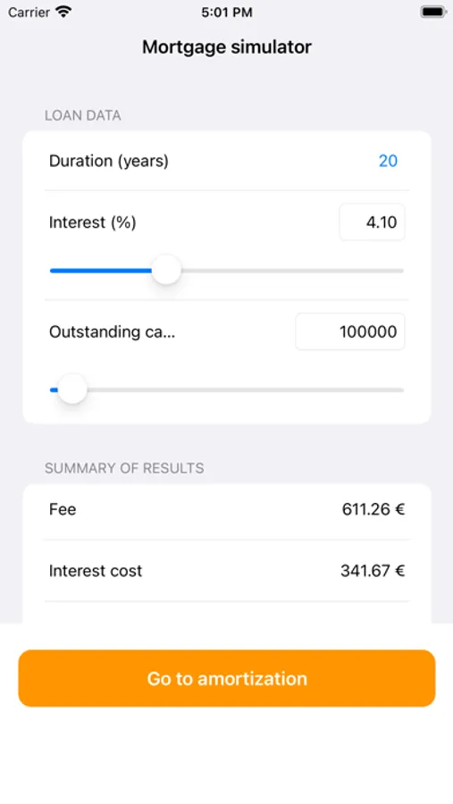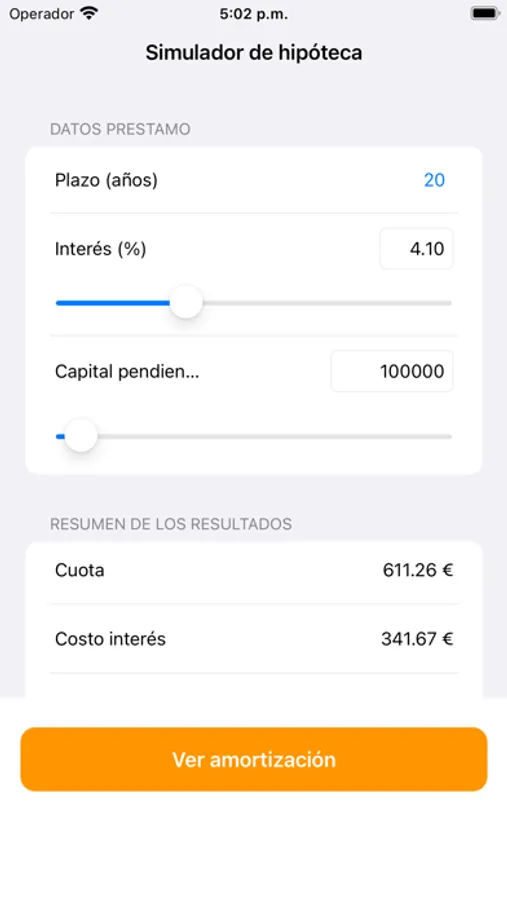 We have created My Mortgage to clearly reflect in a mobile application the interest, installments and total expenses that we will pay when applying for a mortgage. On the main screen we will establish the term, the interest rate of the loan and the capital that we will request from the bank as a mortgage.