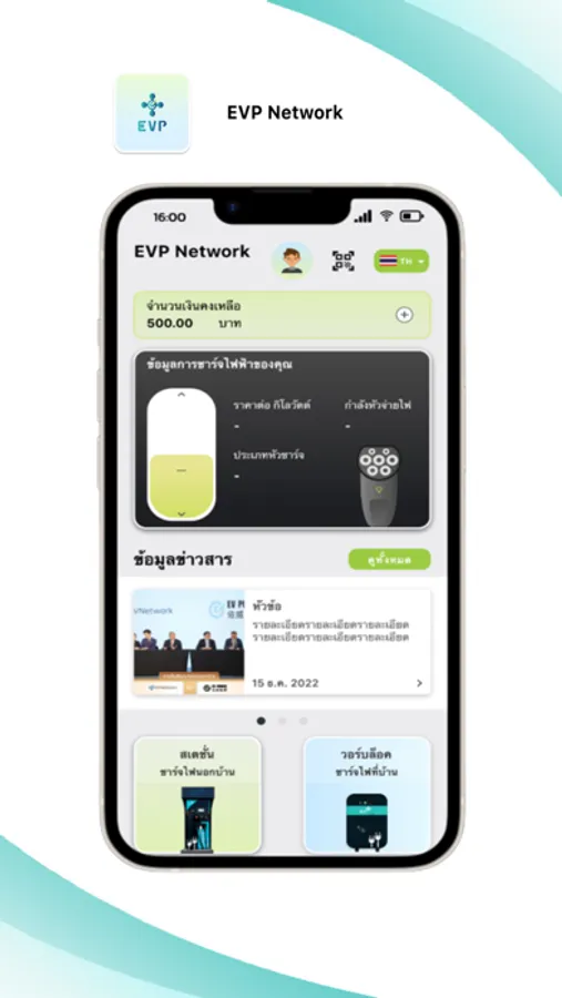 แอปพลิเคชั่นอีวีพี เนทเวิร์ค เราคือผู้ให้บริการ สถานีอัดประจุไฟฟ้าสำหรับรถยนต์ไฟฟ้าตามมาตราฐานประเทศไทยเรา