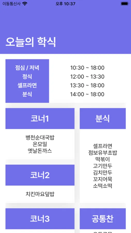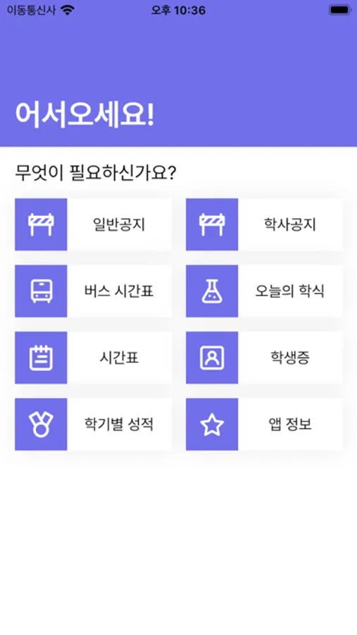버스 시간표, 학식 정보, 개인 시간표 및 개인 성적을 확인 할 수 있습니다.