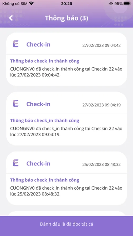 - Thông báo điểm danh