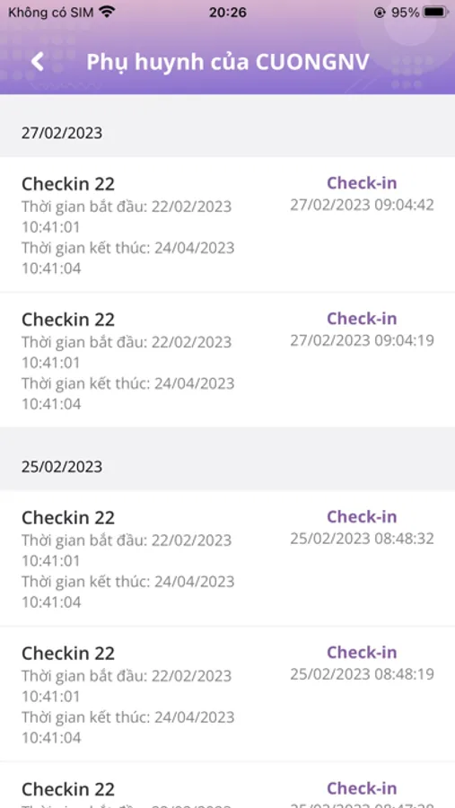 - Xem danh sách điểm danh