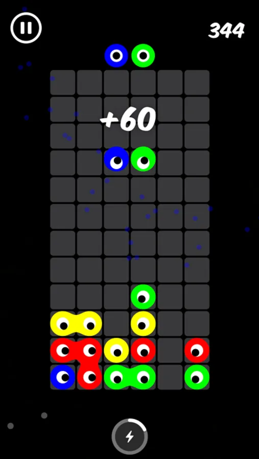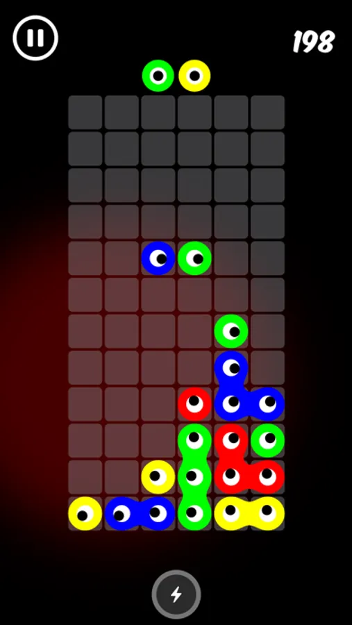 Slimeballs fall from the top of the grid in pairs. Slimeballs can be moved left or right, dropped, or rotated as they fall. Slimeballs fall until they reach another Slimeball or the bottom.
