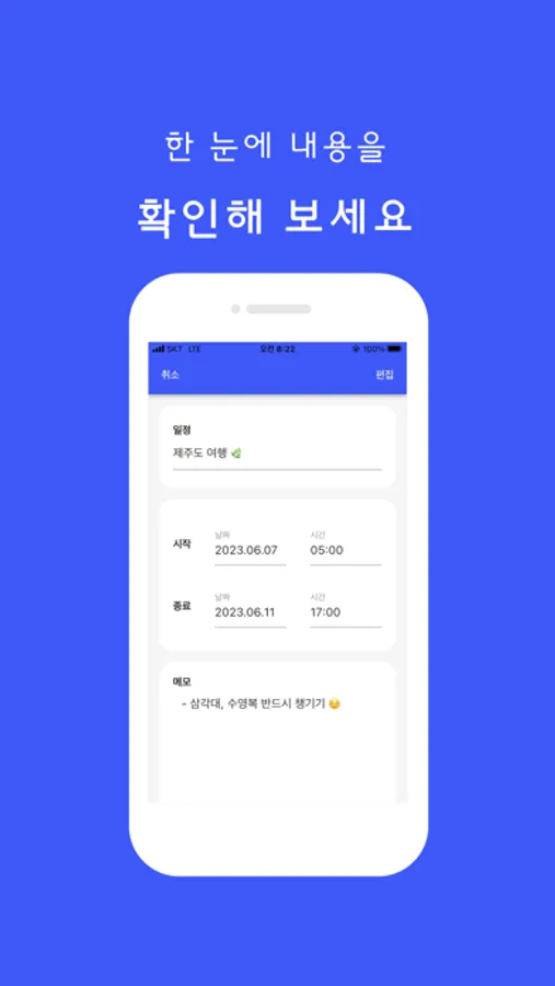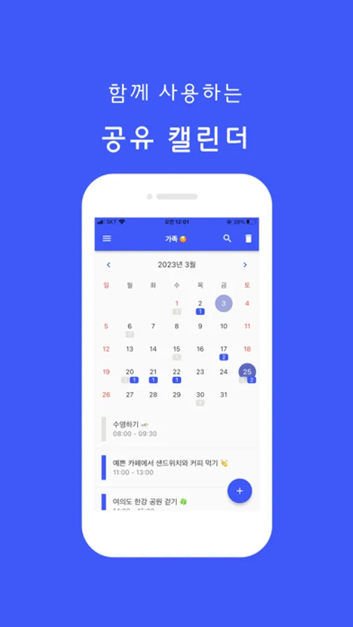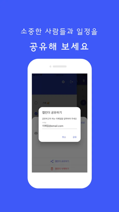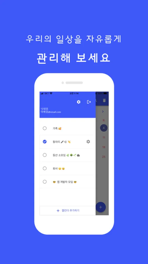 캘린더에 일정을 공유/등록/검색/확인/편집/삭제할 수 있습니다.