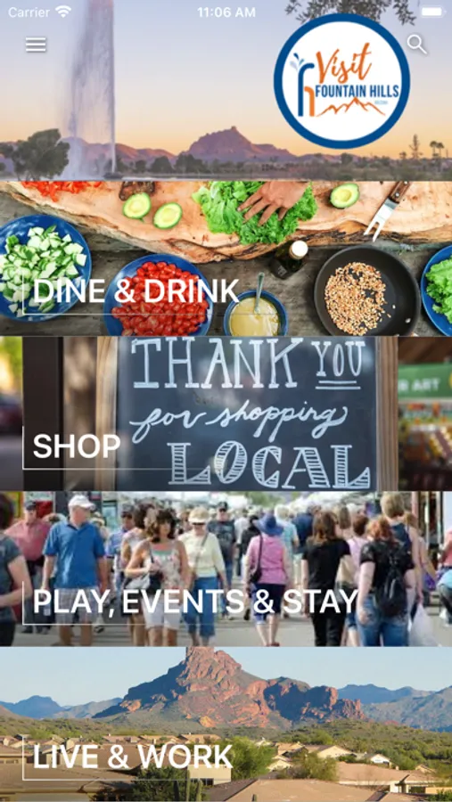The Visit Fountain Hills app is designed to be used by local residents and visitors to explore our many offerings.