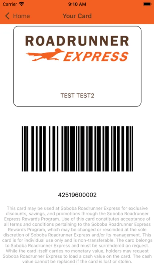 Have electronic copy of their Soboba Roadrunner Rewards card and easily scan it through the phone when shopping.