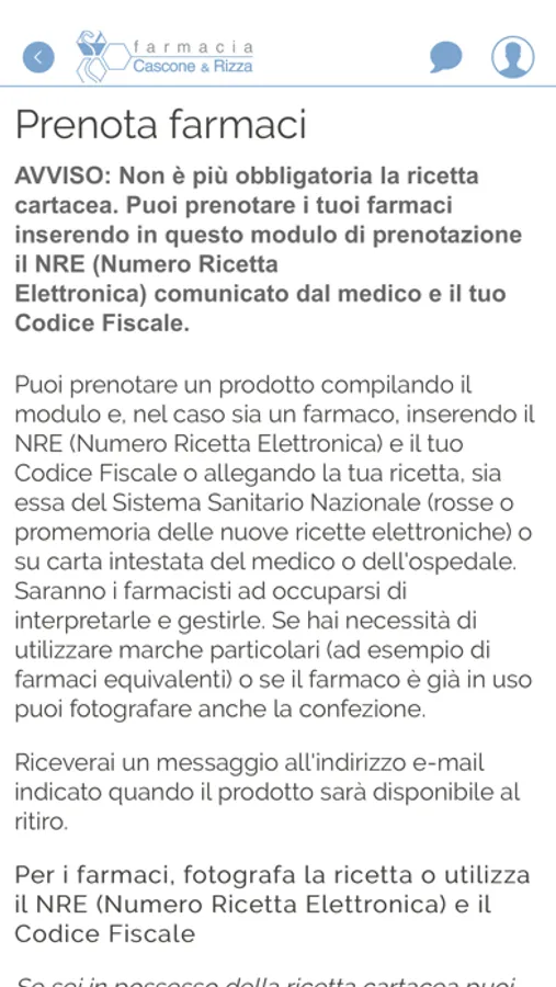 - Anticipo ricetta per prenotazione farmaci con notifica di disponibilità per il ritiro in Farmacia