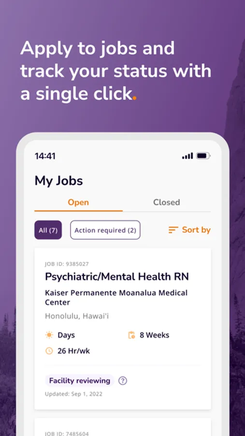 • One-Click Apply: Show your interest in specific positions within your specialty and connect with a recruiter using our simplified "One-Click Apply" feature, saving you time and effort.