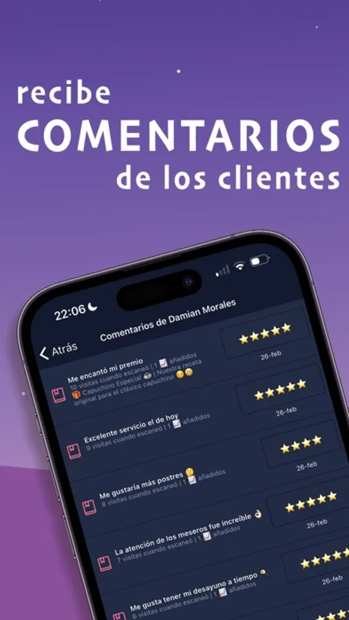 Observa las reseñas que te dejan en cada visita y dales una atención tecnológica y personalizada brindándoles su tarjeta virtual.