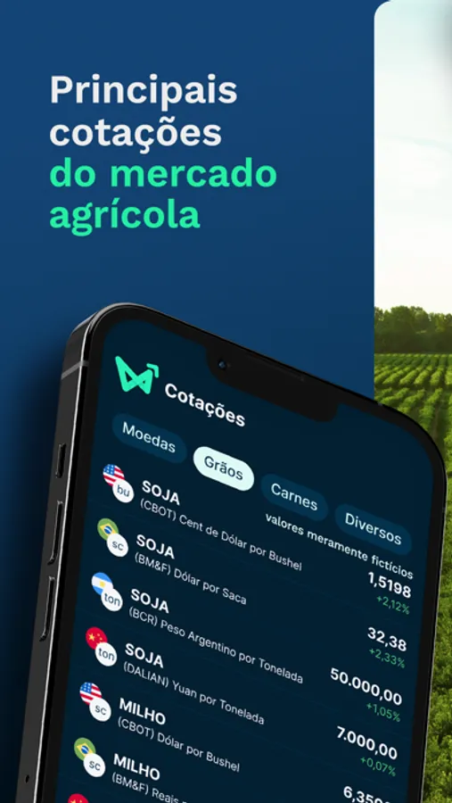 - Cotações de mercado para auxiliar suas tomadas de decisão.