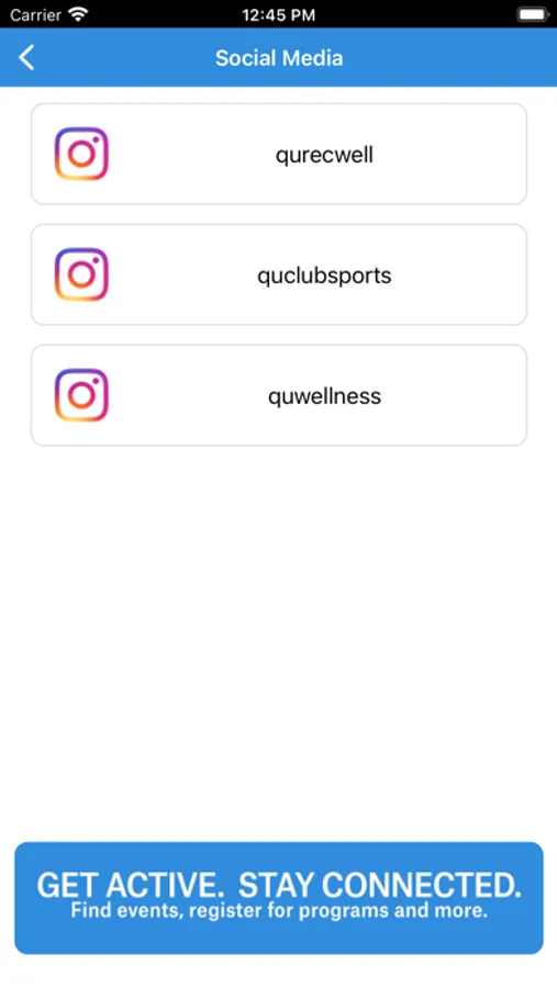 This app is your home for everything related to Quinnipiac Recreation & Wellness! Find and register for group fitness classes, see our facility hours, view live occupancy counts, check the program calendar, and so much more all in one spot! Download today to get the most of your QU RecWell experience. For Intramural registration please download FusionPLAY.