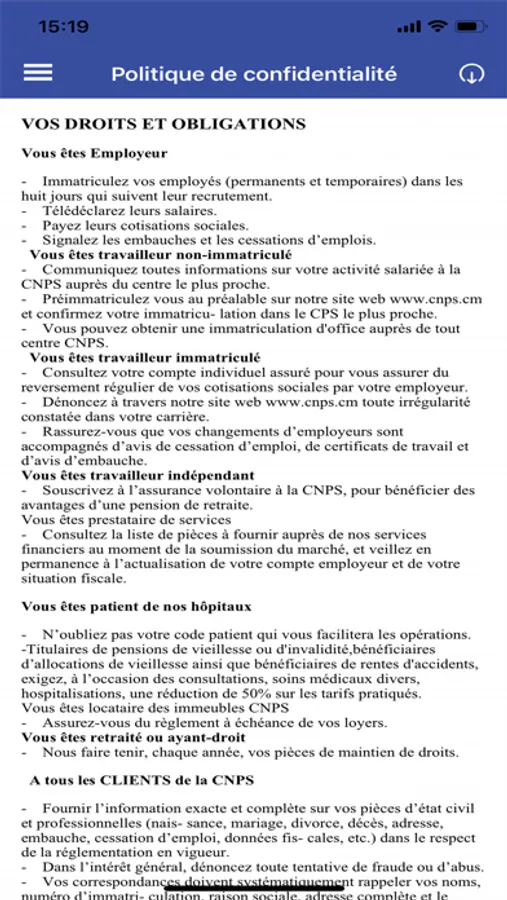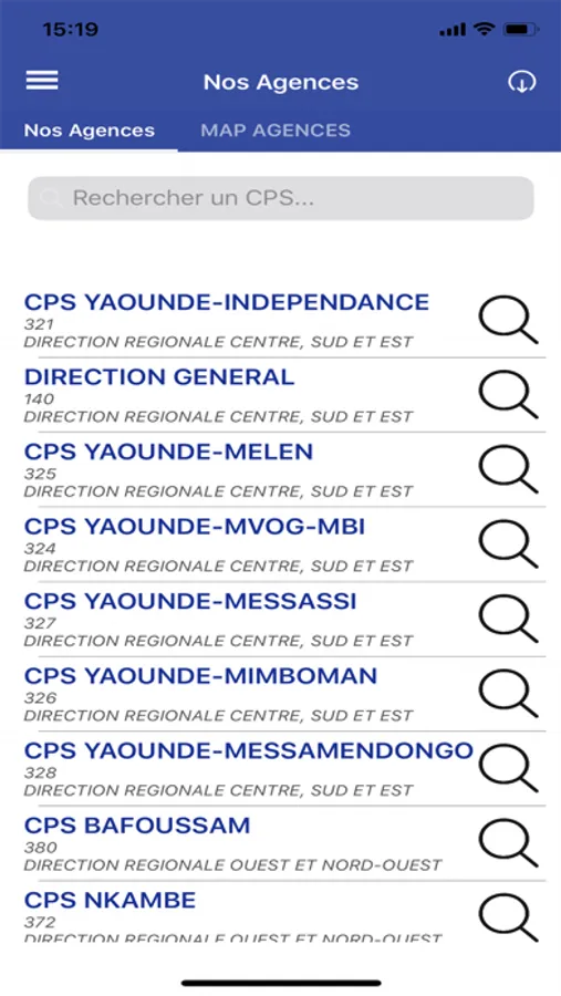 - Géolocalisation des Agences : vous permet de localiser toutes les agences de la CNPS partout au CAMEROUN.