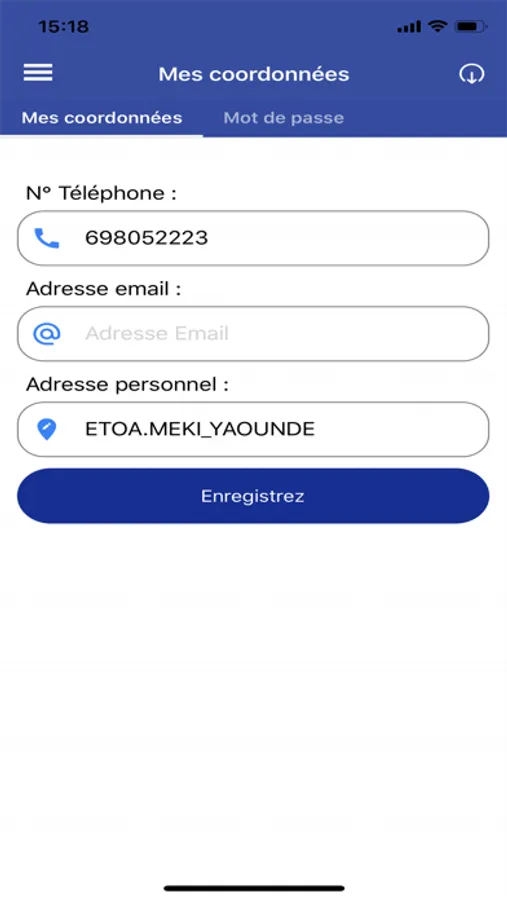 - Modification des cordonnées : vous permet d'actualiser votre profil en modifiant vos coordonnées (adresse ou adresse e-mail ou téléphone).