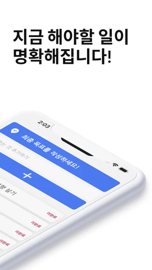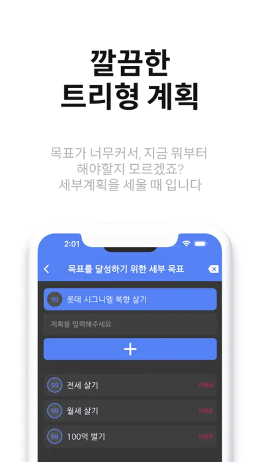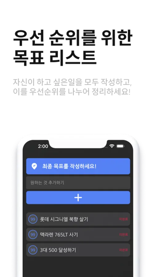 - 초기 화면에는 가장 큰 목표를 작성합니다.