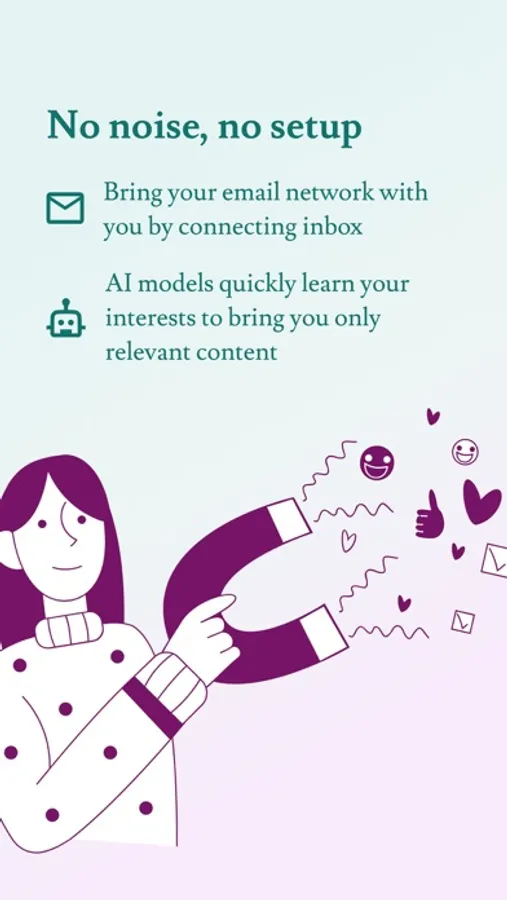 Our AI does the work for you. No rebuilding your network, no questionnaire about your interests. We quickly learn what’s important to you, and only surface those opportunities.