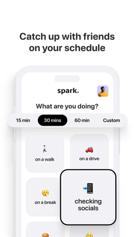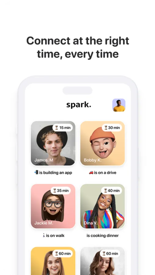 spark is an app that allows you to share your availability with friends. It allows you to mark when you’re free, notifying specific friends you’ve added so they can call or FaceTime you.