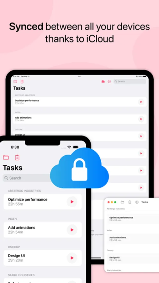 Automatic synchronization of the data between all your Apple devices (iPhone, iPad, Mac and Apple Watch) thanks to iCloud. Your current task session will also synchronize.