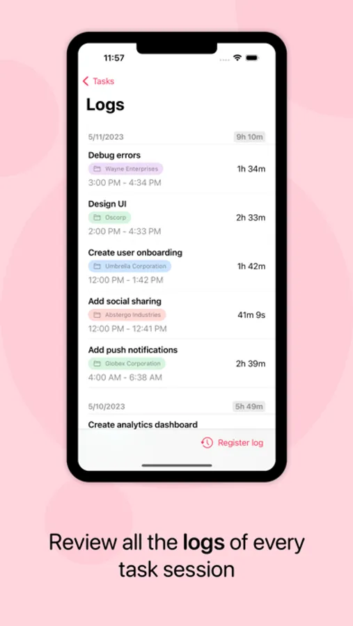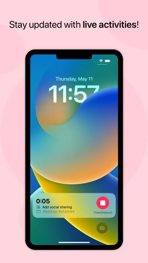 Stay updated of the current task session elapsed time with Live Activities on your notifications center (or dynamic island) on your iPhone and iPad.
