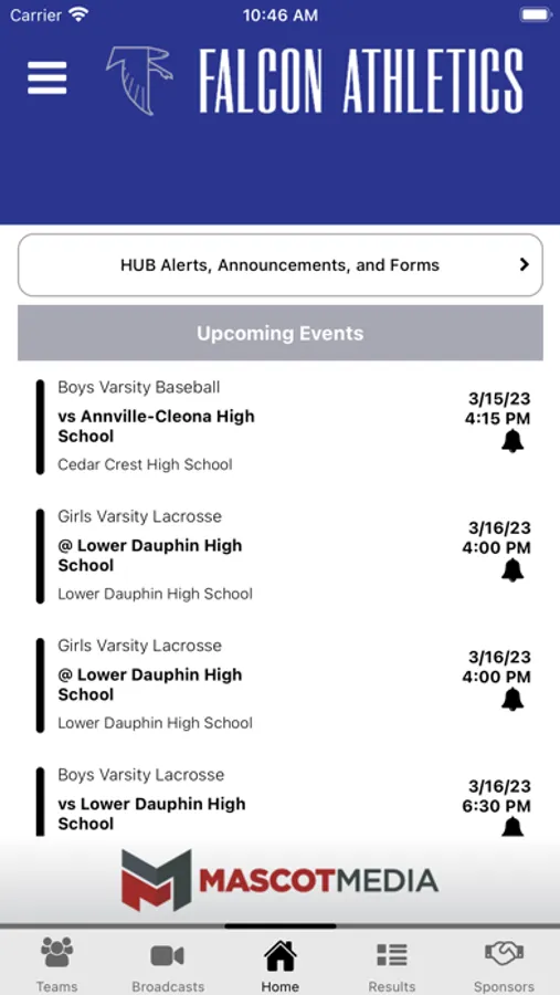 -Supporters: Special Thanks to local boosters and supporters of Cedar Crest Falcons Athletics with a directory including website and in-app calling.