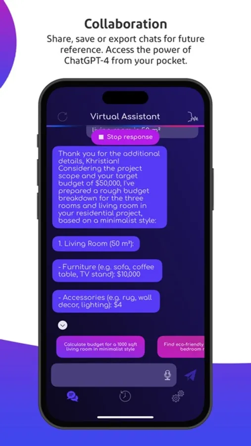 Navigate your professional world smarter with our features. Benefit from industry-specific prompt suggestions, versatile text-to-speech voices, and efficient dictation. Save, copy, and export your conversations effortlessly, optimizing your workflow.