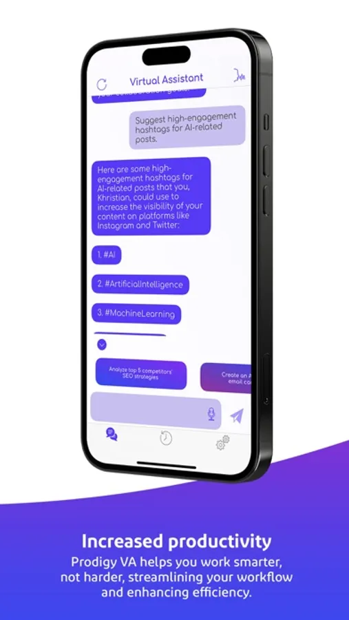 Prodigy VA shines with a sleek interface, Light and Dark Modes included. It's your portable ChatGPT solution, designed to combat creative blocks and procrastination. Upgrade your productivity with Prodigy VA, your AI companion for professional success.