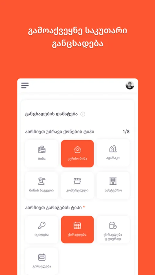Whether renting, buying or selling, private or commercial: We are Georgia's number 1 for all things real estate. Every month, we support more than 500 000 people on our online marketplace or in our app in their search, purchase, financing, or move into their new home - just as we do in selling or renting.