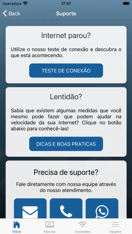 O App é um canal que visa facilitar e otimizar o tempo do cliente, proporcionando o acesso rápido a informações como: