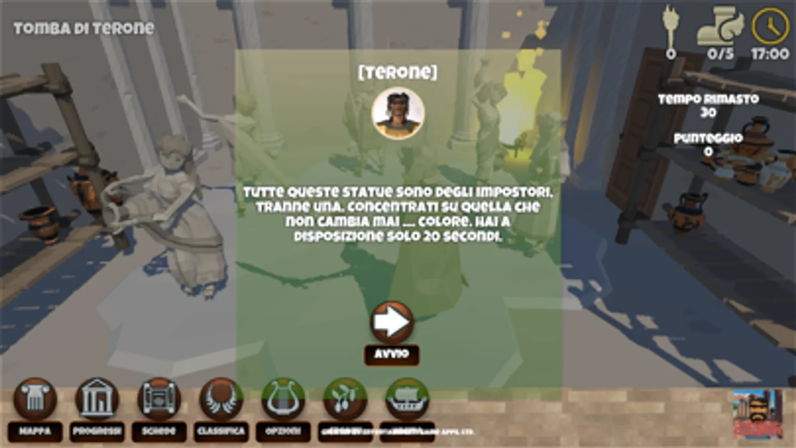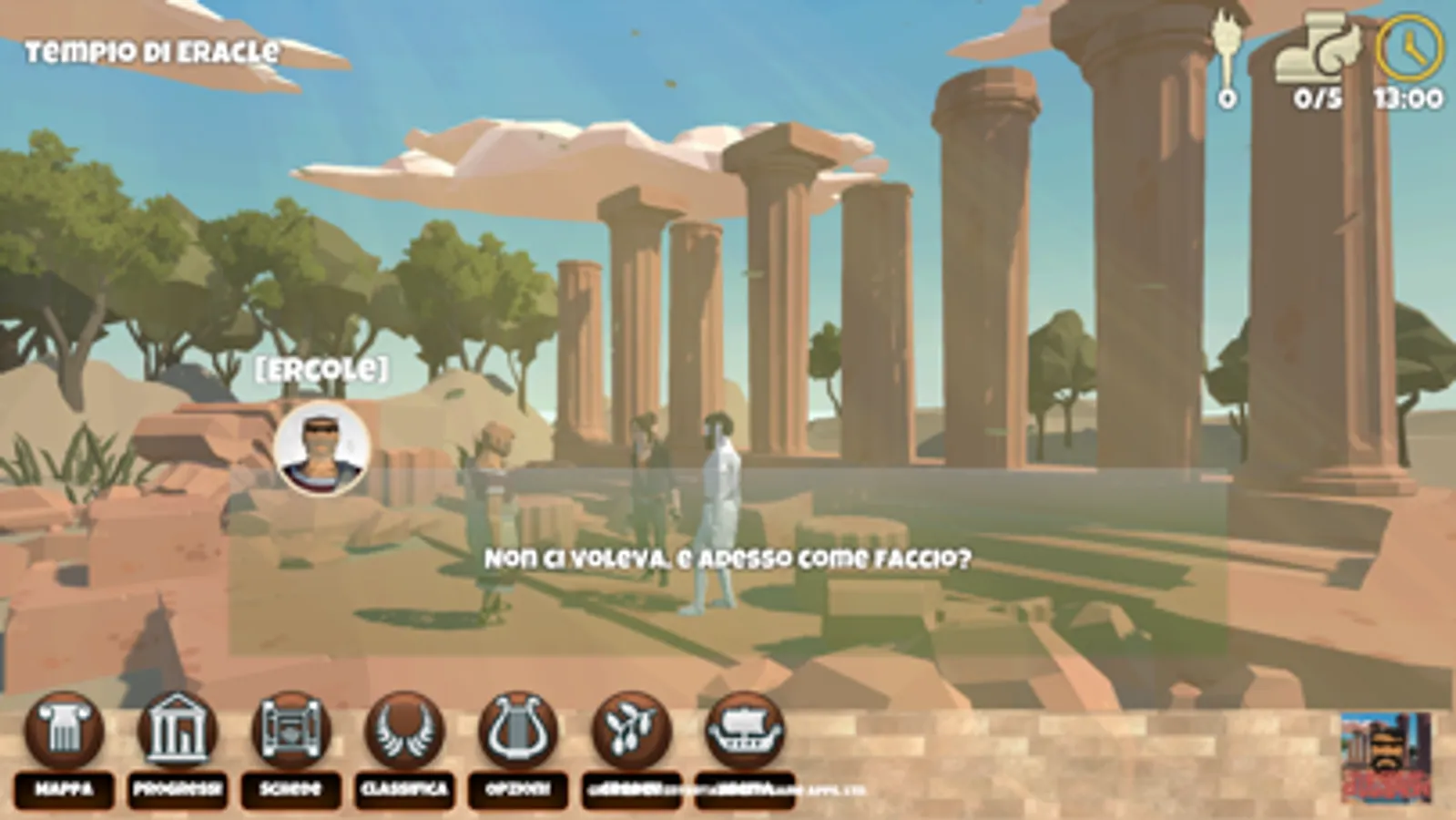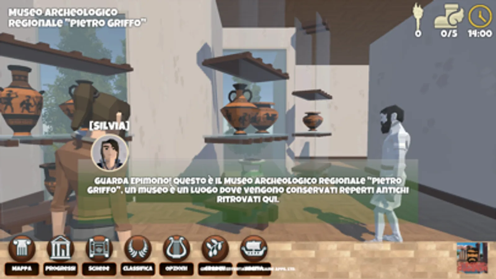 Al termine delle prove si apre un portale, uno squarcio temporale che conduce Silvia ed Epimono verso l’antica Eraclea Minoa, quando ancora era integra e prosperosa. Per raggiungere l’agorà dove la città è pronta a festeggiarlo, Epimono deve affrontare un’ultima prova di orientamento (sono un po’ di secoli che non torna a Eraclea, dopotutto!). Attraverso il minigioco del labirinto, Epimono e Silvia raggiungono l’agorà ma quando tutto sembra pronto per i festeggiamenti cittadini, compare Esseneto. “Se vuoi davvero essere il più grande campione della Sicilia, prima dovrai affrontarmi!”.