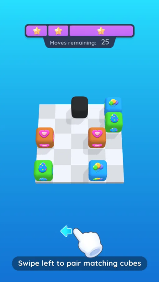Swipe to move all cubes. When two matching cubes touch, they disappear.