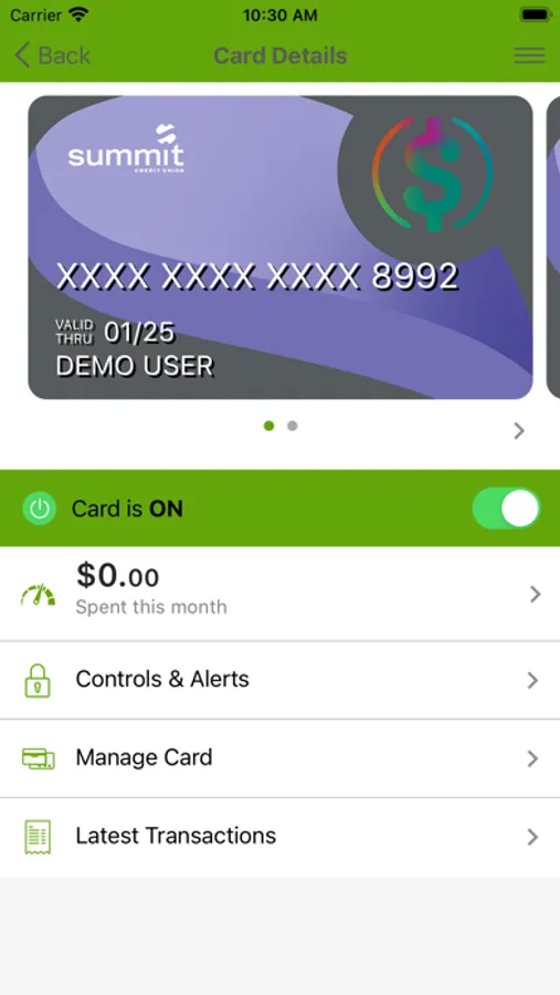 Summit Credit Union Card Controls helps you protect your credit cards by sending you transaction alerts and giving you the ability to define when, where and how your cards are used. Simply download the Summit CU Card Controls app to your smartphone, then customize your alert preferences and usage settings to monitor and manage your cards.