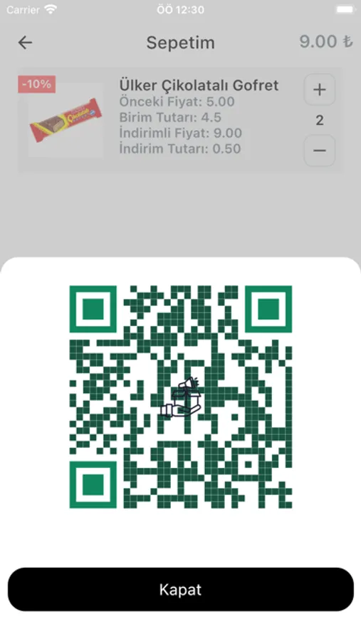 İşletme hesabı ile uygulamaya giriş yapan işletmeler, kendi iş yerlerine özel olarak üretilen QR kodu okutarak kullanıcıların sepetlerini inceleyebilirler. Genel indirimli bir işletme ise QR kodu okuttuktan sonra doğrudan hesaplama sayfasına yönlendirilir.