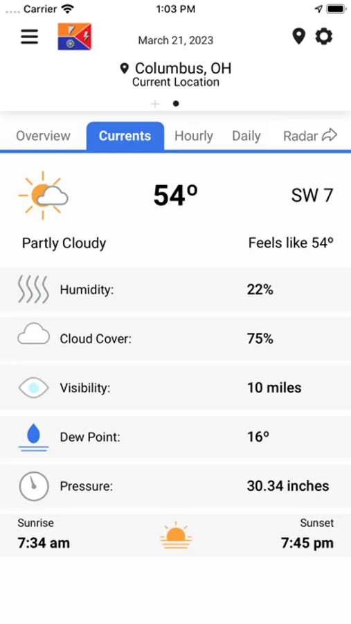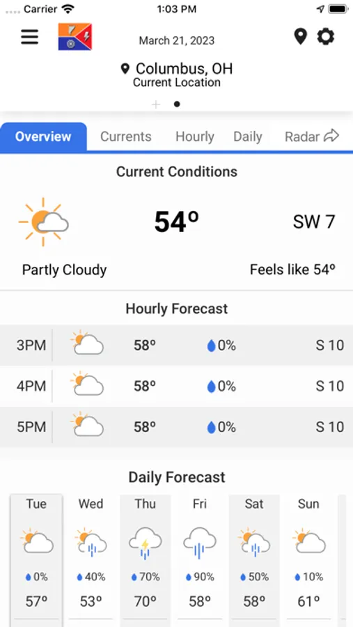 • Interactive Radar to track storms in real time, including the ability to tell when lightning is approaching your area