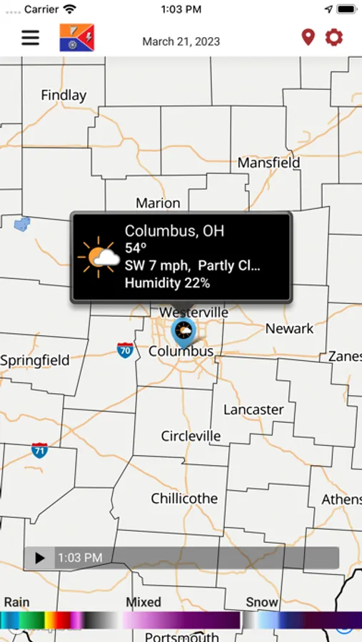 • Opt-In for notifications about incoming rain, inclement weather, or the threat of twisting thunderstorms